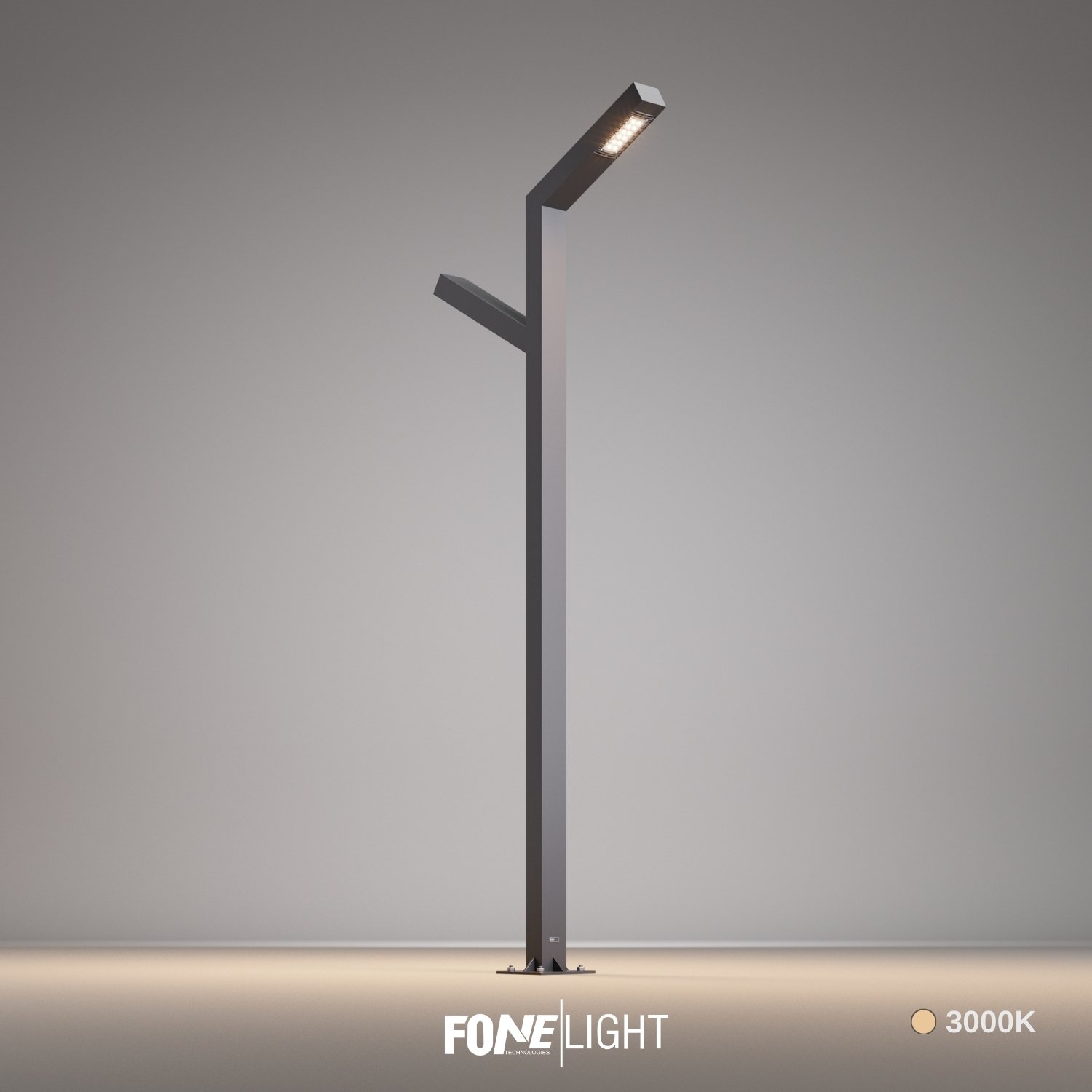 Een decoratieve stedelijke lichtmast die duurzame aluminium constructie combineert met een elegant gebogen design. LED-verlichting voor openbare ruimtes, parken en commerciële landschappen.