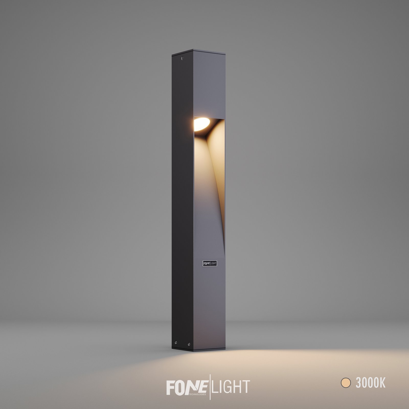 Een architectonische bollardlamp voor paden en stedelijke ruimtes. Aluminium constructie met een minimalistisch modern design.